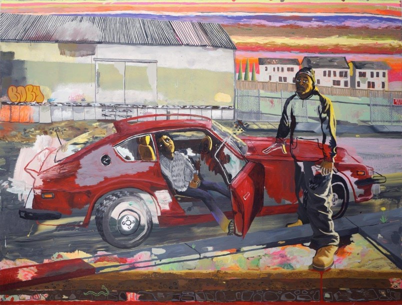 The painter Cate White makes similarly confessional observations in her work. In her paintings White often depicts personal relationships and intimate moments between people she knows. White lives and works in Oakland, California and regularly pictures deprived urban areas. The urban environment in White’s work is gritty and real. The figures in her paintings are caught in a state of forming. They are partly represented and partly sketched out in outline. This gives the work a deconstructed style as though White is peeling back the layers of reality. There’s no visual security. Like Lamar, White’s introspection and reinvestigation of the urban environment closely mirrors trends in contemporary hip-hop.