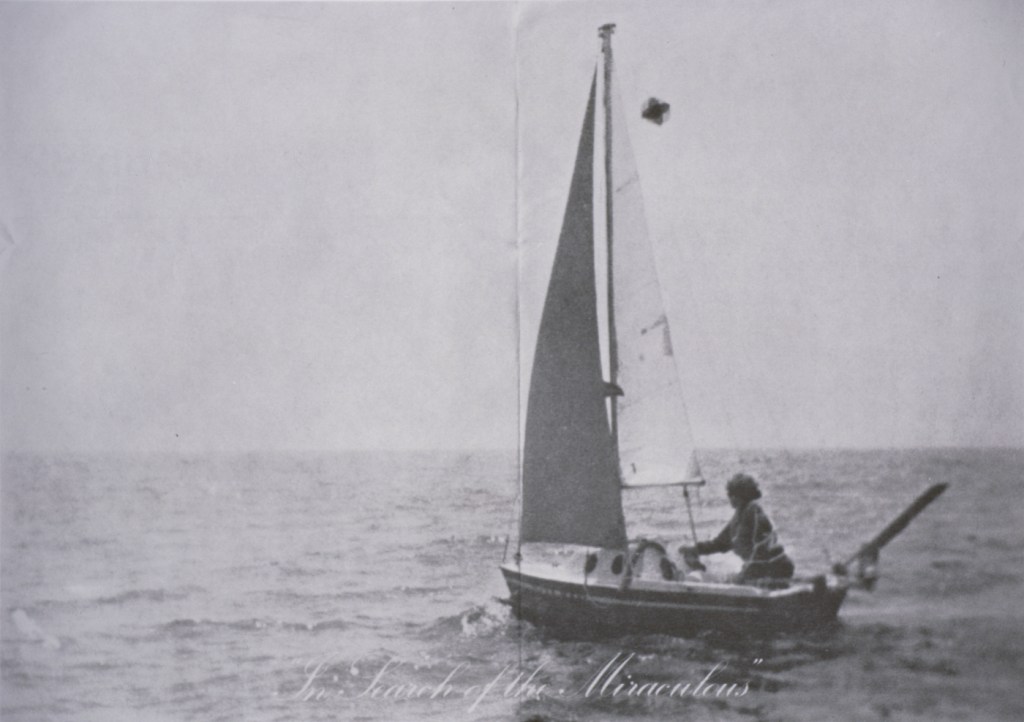In 1975, Ader set out on a journey as part of a trilogy of events which made up the ‘In Search of the Miraculous’ project. The journey formed the second act of the trilogy and involved a solo attempt to sail across the Atlantic Ocean in a sail boat named the ‘Ocean Wave’. Ader planned to cross the Atlantic to reach England and then onwards to the Netherlands to an exhibition of his work in the Groniger Museum. The show had been planned to present a display of film and photography to compliment work shown in an earlier exhibition at the Claire Copley Gallery in Los Angeles. The two exhibitions and journey were conceived as a collective work and a way of connecting the theme of exploration and the geographic locations together.